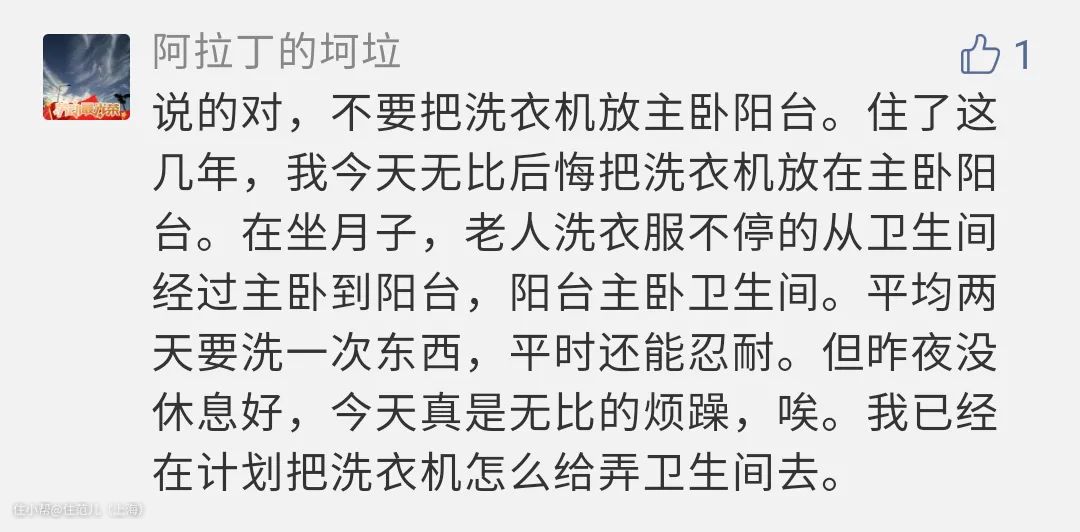不要把洗衣区放在儿女卧室的阳台,父母做家务,频繁穿越儿女卧室,隐私干扰很大,也很容易产生家庭矛盾。