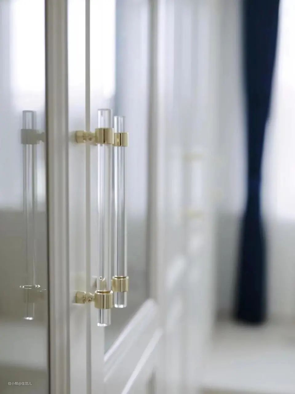 水晶拉手因为独特的透光、反光效果,更晶莹剔透,一般都需要和黄铜底座搭配,如果你想体现法式风格,可以选水晶拉手。