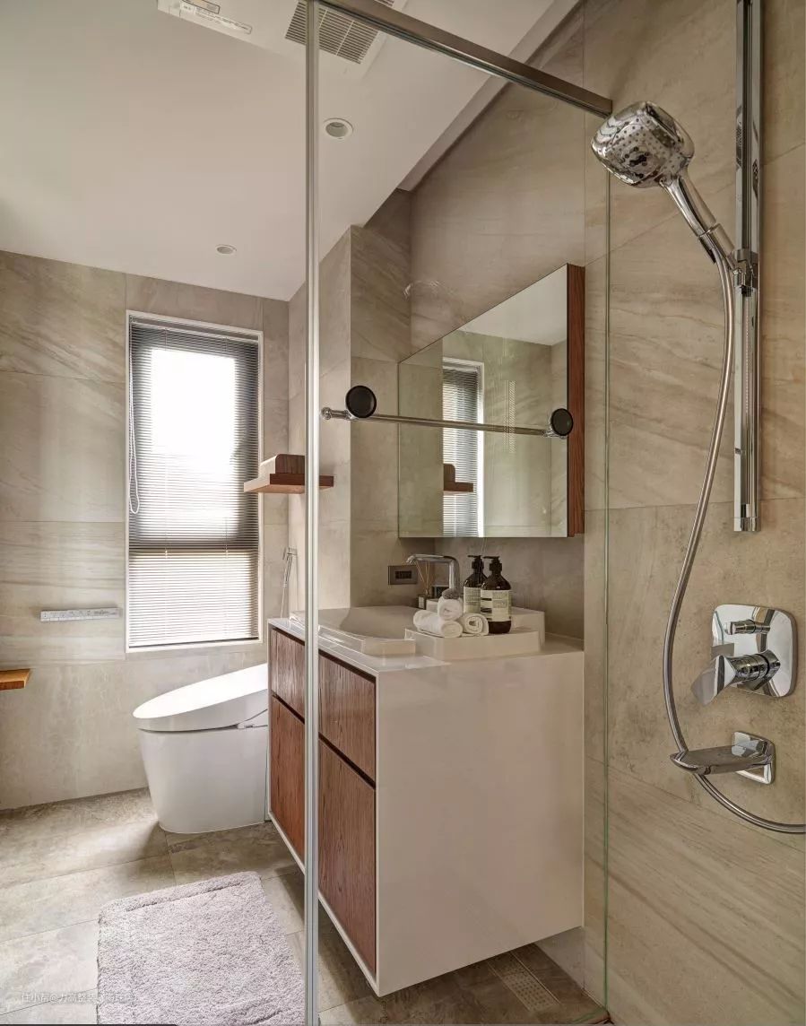 二式分离,常见的是把洗漱台外移,卫生间内保留马桶和淋浴。这样可以有效的利用一些其他空间。