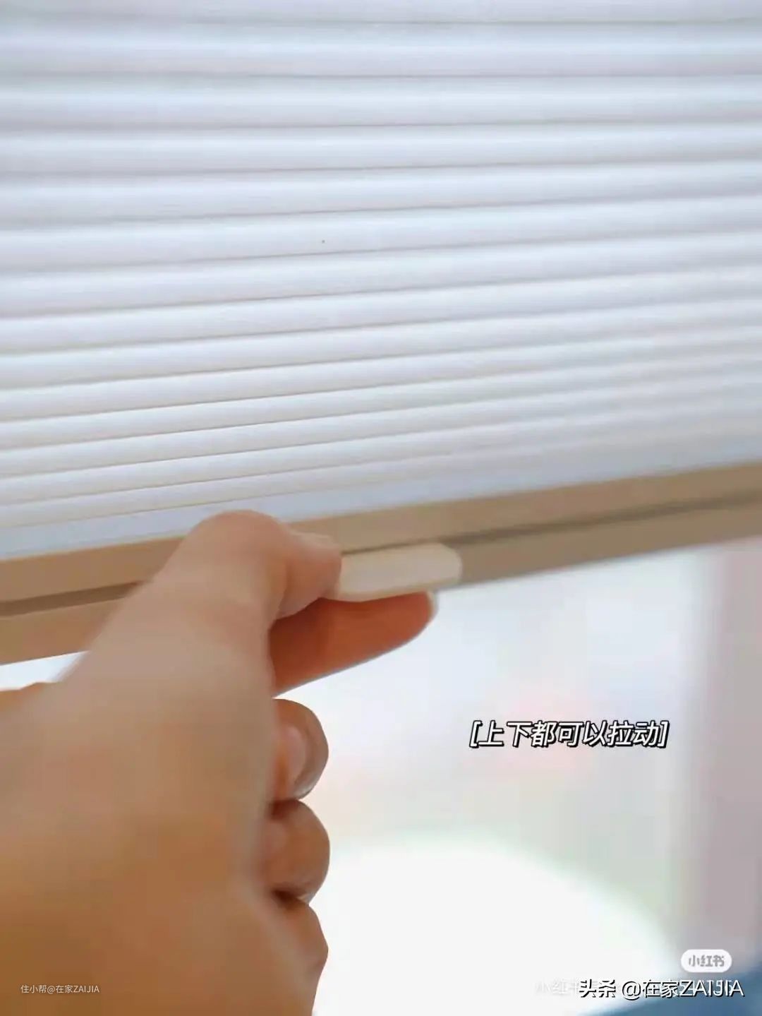 还有一种半透光的蜂巢帘,有全放下和全收起来两种状态,美观又实用。