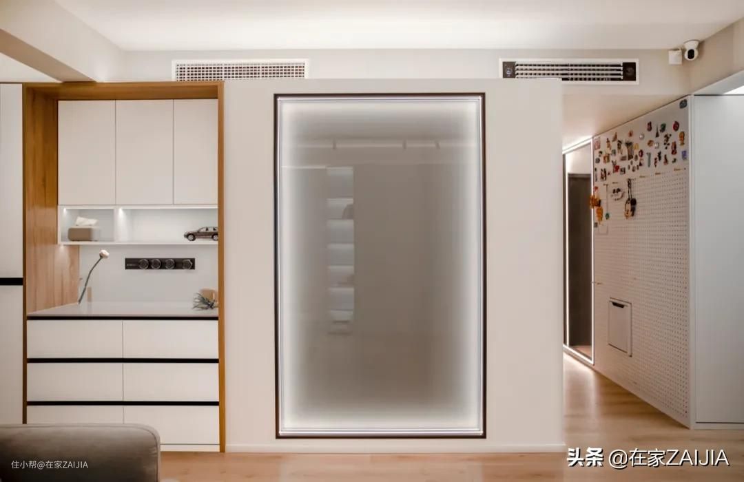 之前分享的案例中,设计师王恒就用一面电动雾化玻璃为小暗卫开了扇室内窗。既改善了卫生间采光不好的问题,又能保护隐私。