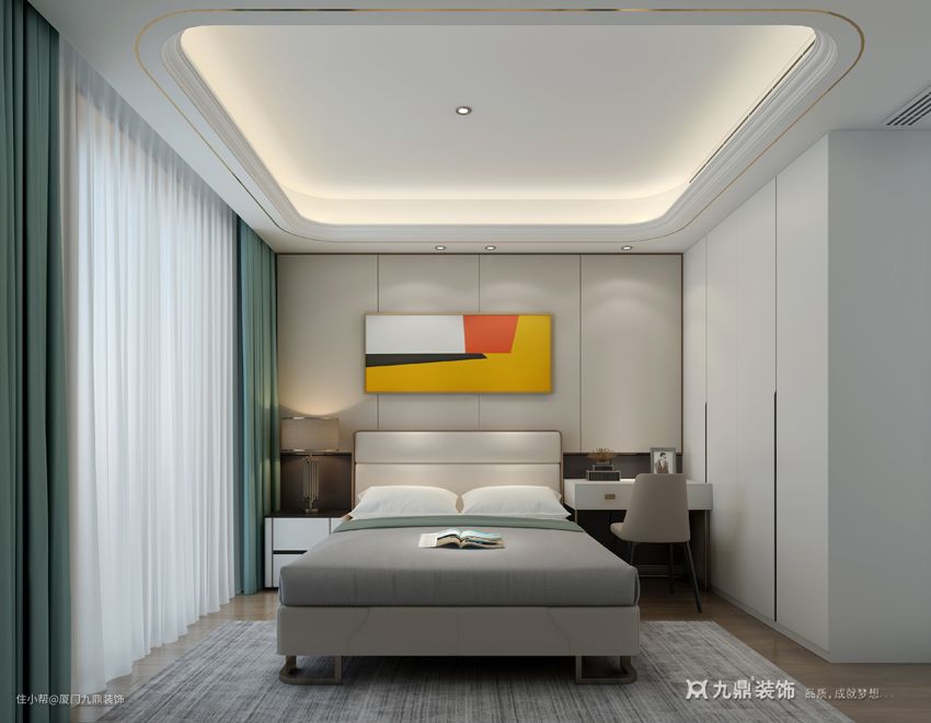 本案例位于顶峰鹭江1号小区,业主喜欢现代简约风格。对设计师的设计理念表示非常的满意。选择九鼎装饰也是对九鼎装饰的施工工艺比较放心。