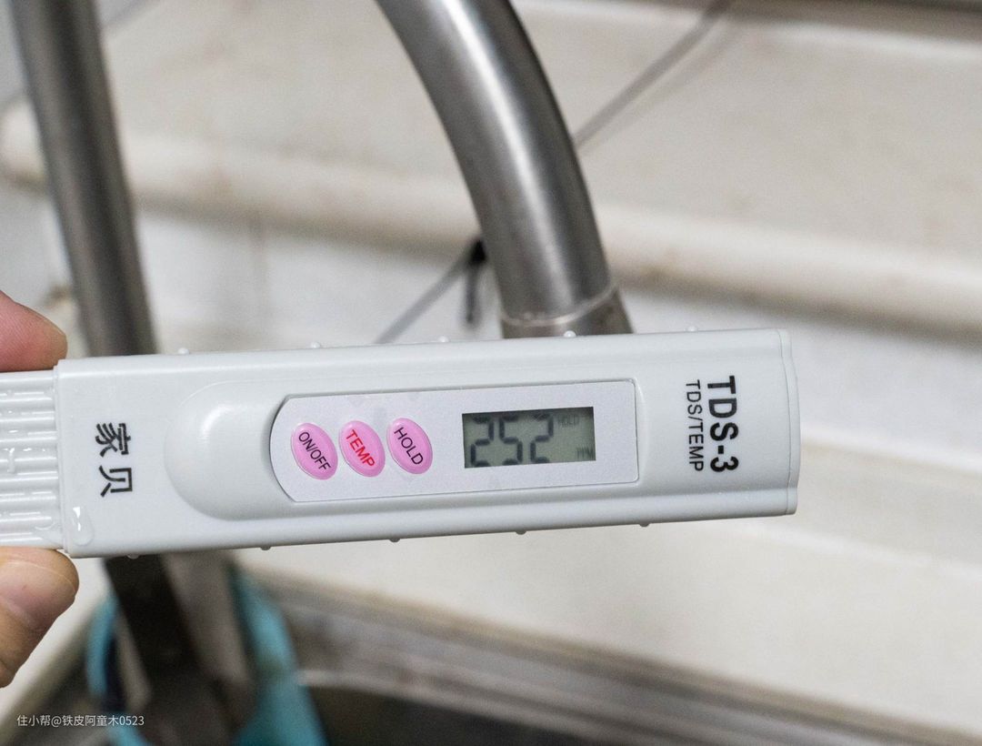 我家住在北京南城,水质很一般,用TDS监测笔一看,TDS值高达 252!