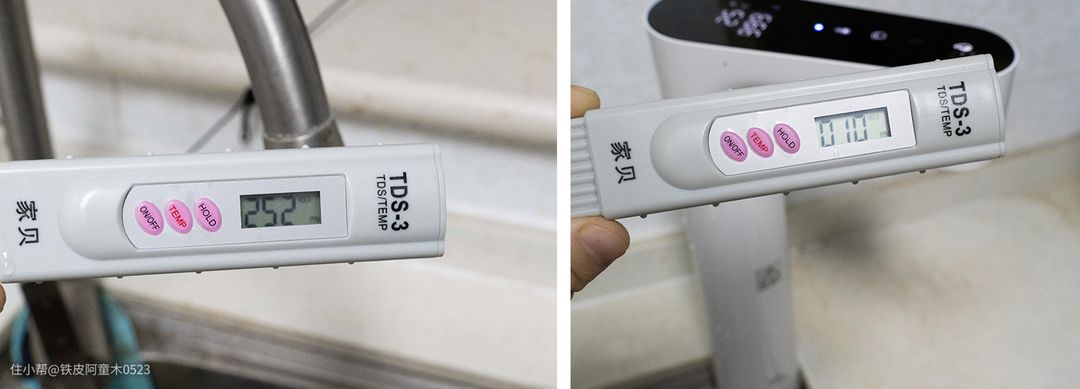初始自来水的TDS值为252,经过Q600净水器净化后的TDS值为10,可见净化效果还是相当明显的,可放心饮用!