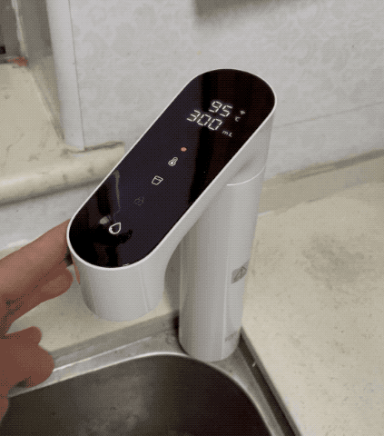 智能水龙头可支持多角度旋转,使用时非常方便,特别是取热水时,可直接将水杯、水盆等放在台面上接水。