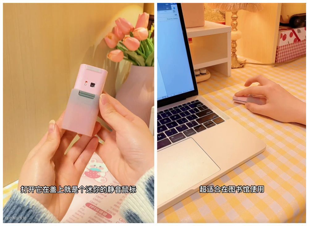这种小鼠标很适合学生党使用,可以将它随手放在兜里、书包里,或者通过后面自带的夹子夹在书本上,需要的时候随手拿出来使用,真的超方便。