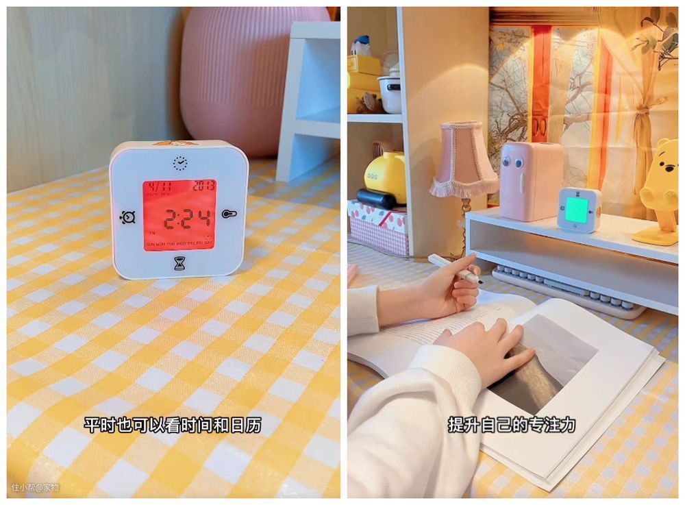 平日里摆在书桌上,就是一个小巧的闹钟,而使用的时候,只需要将其翻转,就能实现不同的功能。