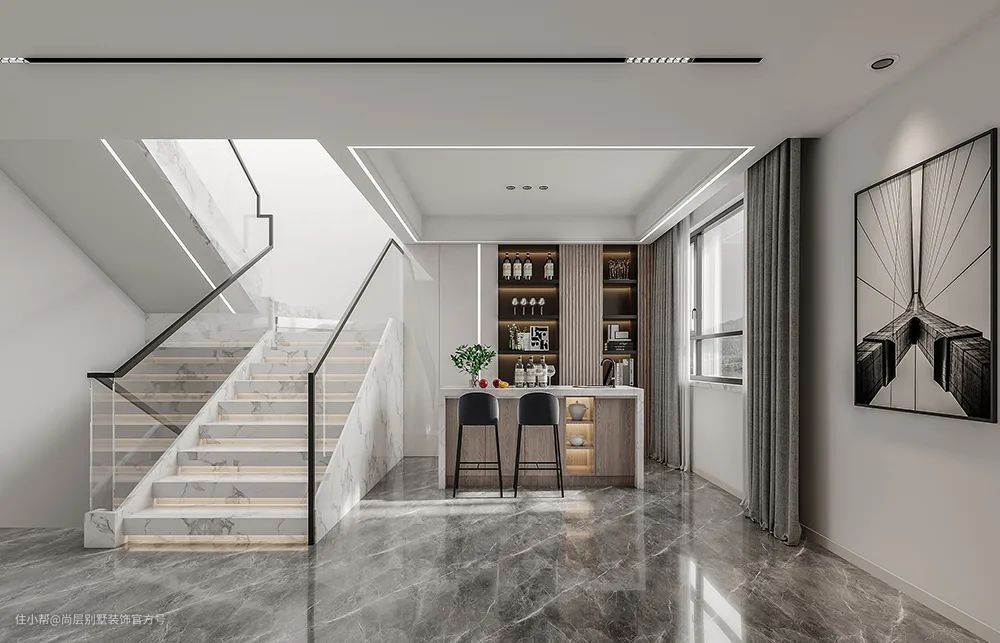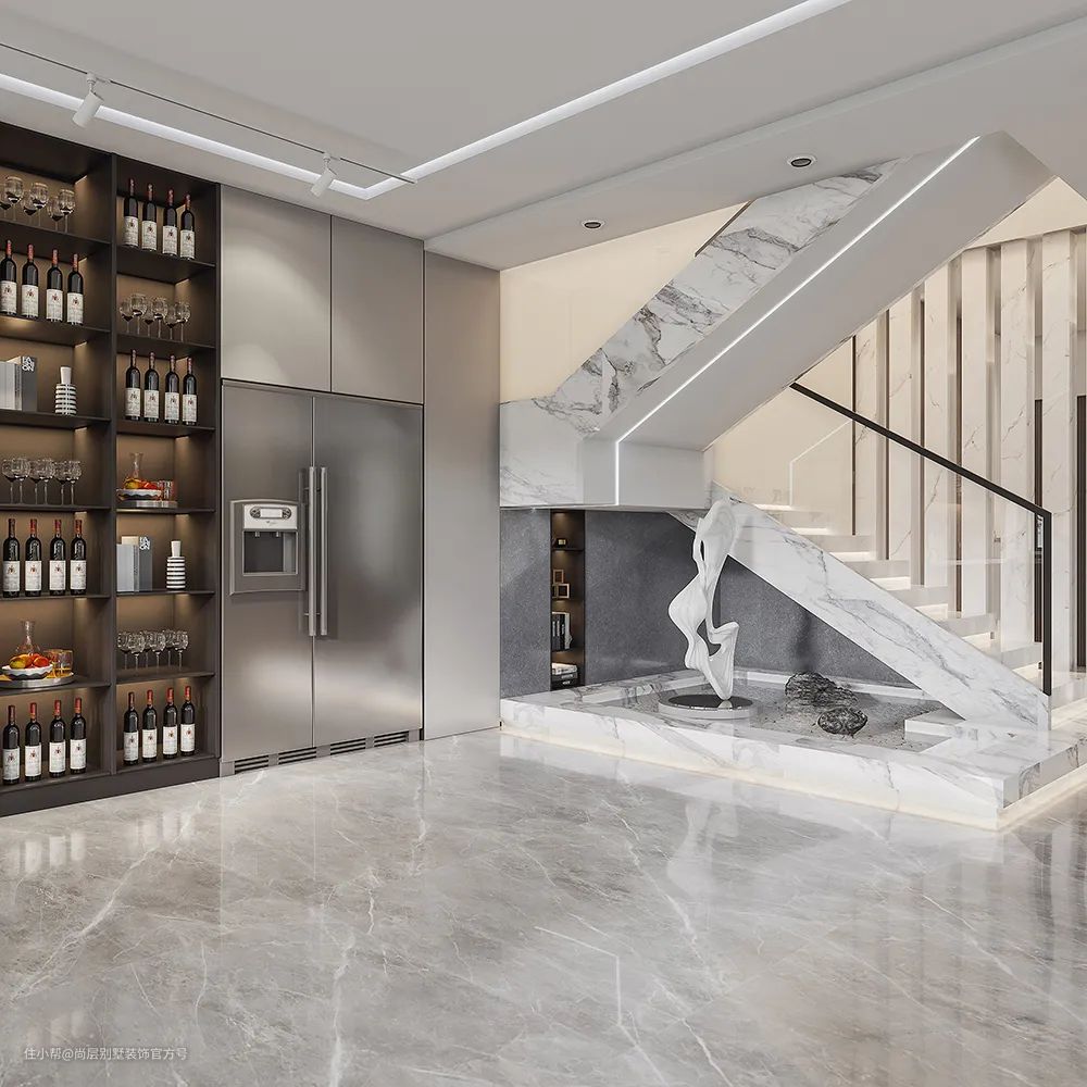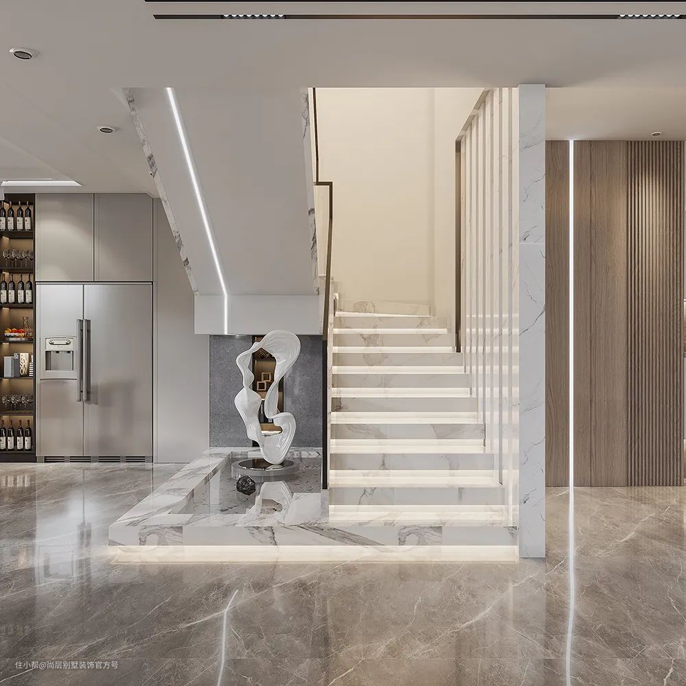 设计师让家的每个角落都变得更加美好。楼梯以石纹材质为主,带来通透的视野和奢华的质感。