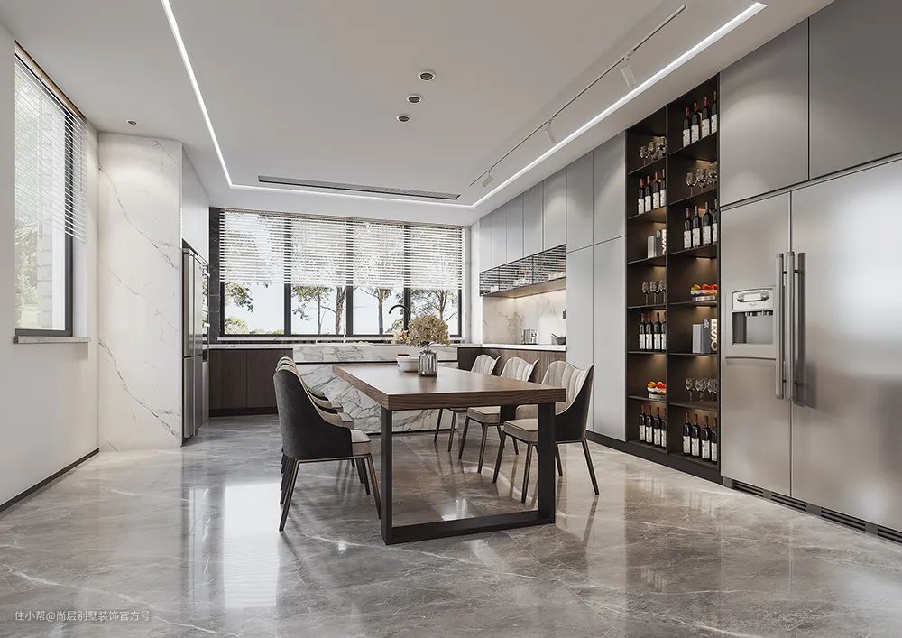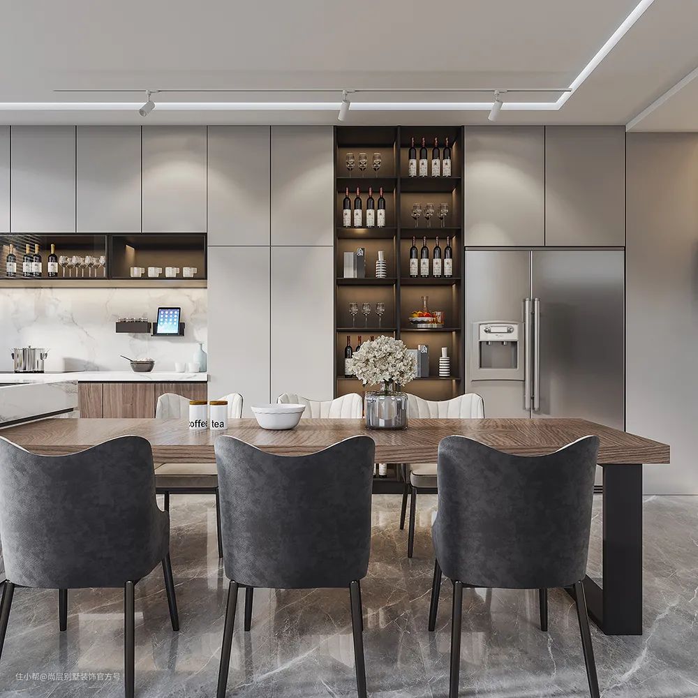 线条简洁的中岛台与餐边柜相互辉映,将家人的温暖聚焦于用餐时刻。