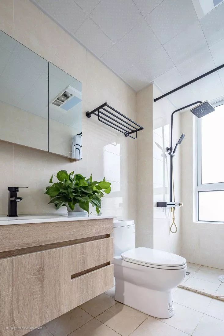 马桶上方的毛巾架在很多屋主日常使用的时候,是用来放更换的衣服,洗漱的时候衣服放在干区的毛巾架上,就不会受到水汽的侵蚀。