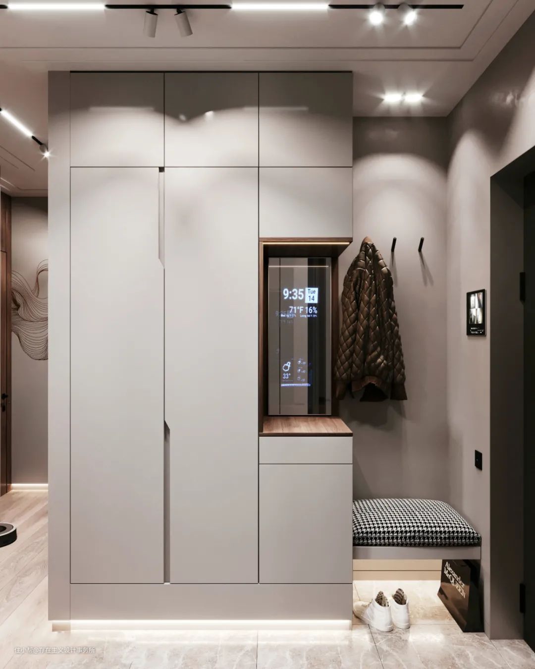 空格中间的感应灯瞬间让玄关温馨很多