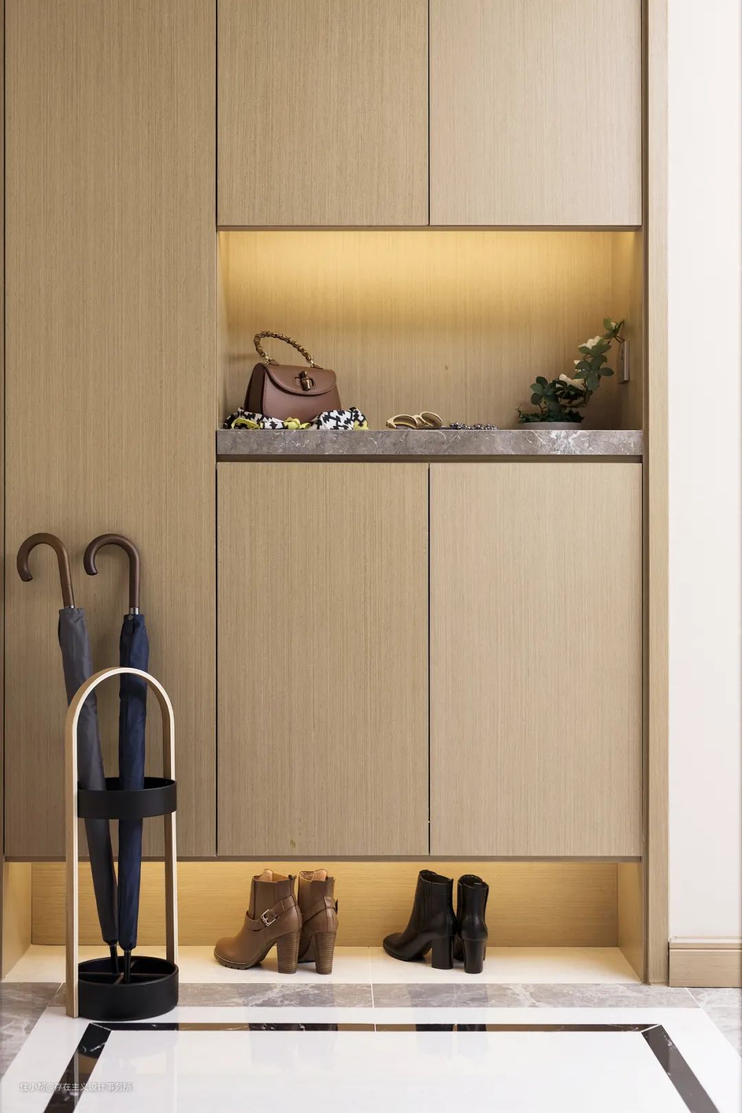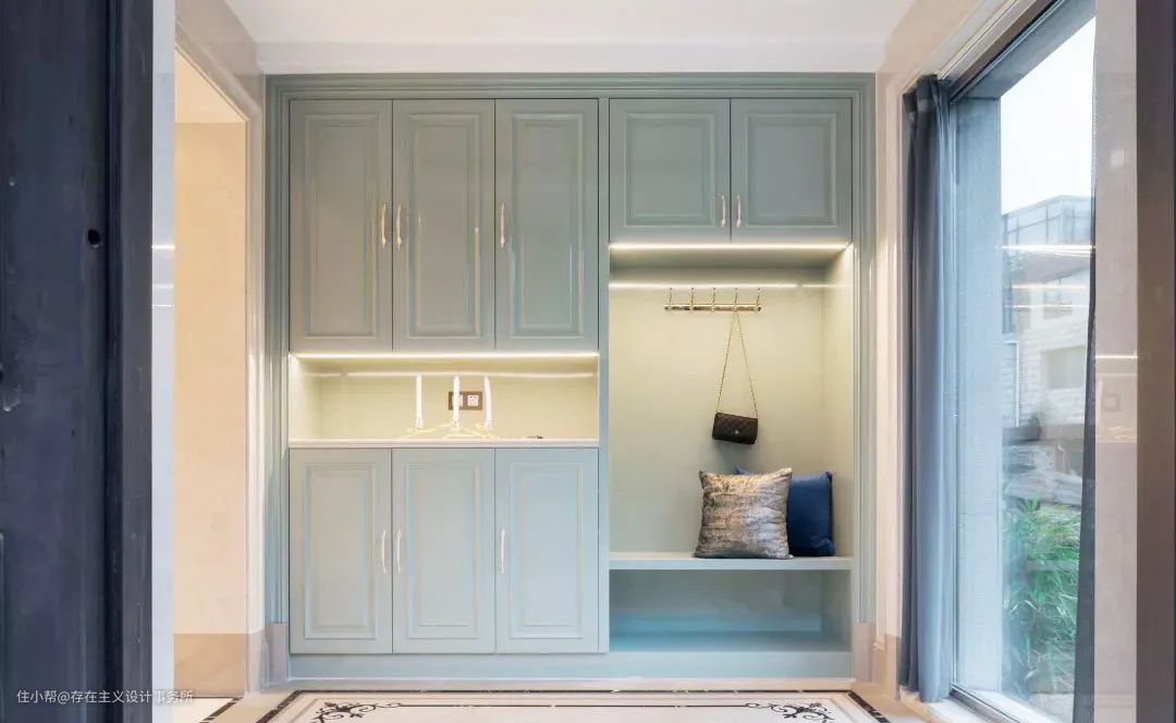 玄关柜的设计,既要满足功能性又要凸显高级的设计感,不仅仅是鞋柜,更是入口处的杂物收纳处。在此,更可整理仪容,更换鞋帽。一方玄关小景,一抹风景,开门的瞬间,家的温馨气息扑面而来,心切换到放松的状态,回归静雅生活。