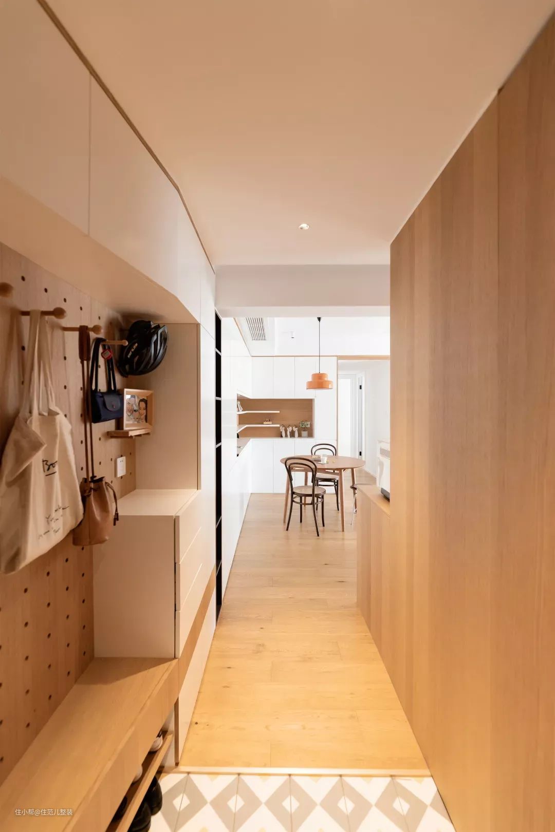 可以在玄关常备熨斗、喷雾、湿毛巾、羊毛掸子、除灰滚轴等,方便把衣服 “收拾” 妥当后,直接就地挂晾。