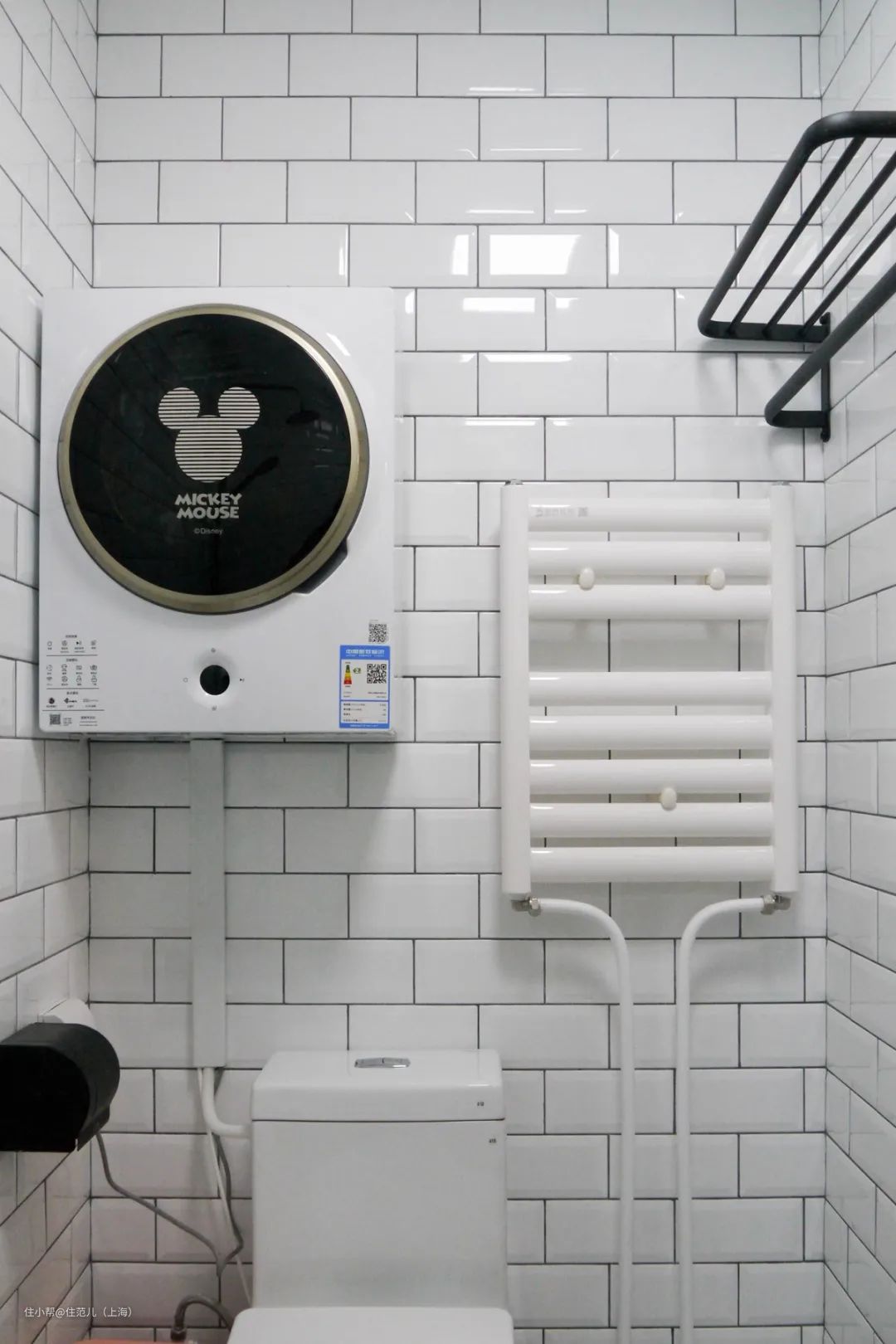 对于很多小户型,或者进出水位受限的精装房来说,把洗衣机安置在卫生间似乎是无奈之选。但其实洗澡前把衣服直接丢进洗衣机,动线上也是合理的。