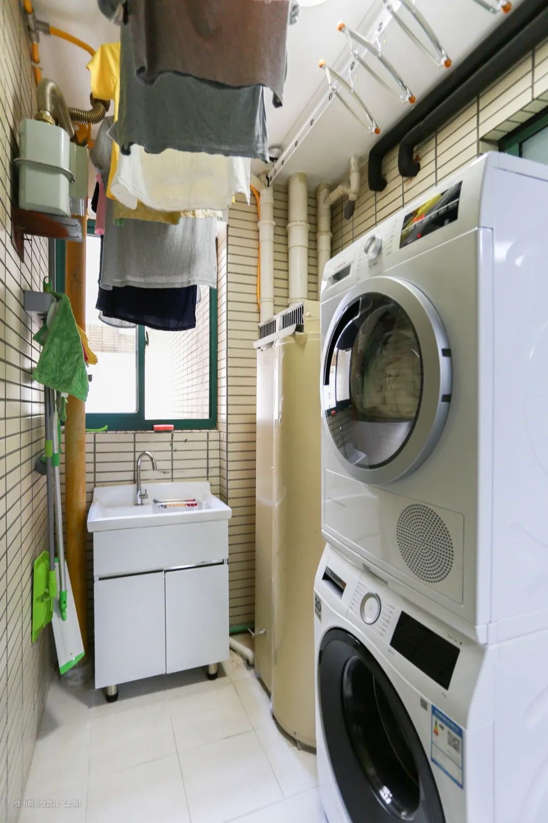 这个上海家庭就是把衣服晾晒在家务阳台,烘干机是梅雨天才会使用,图源:住范儿自摄