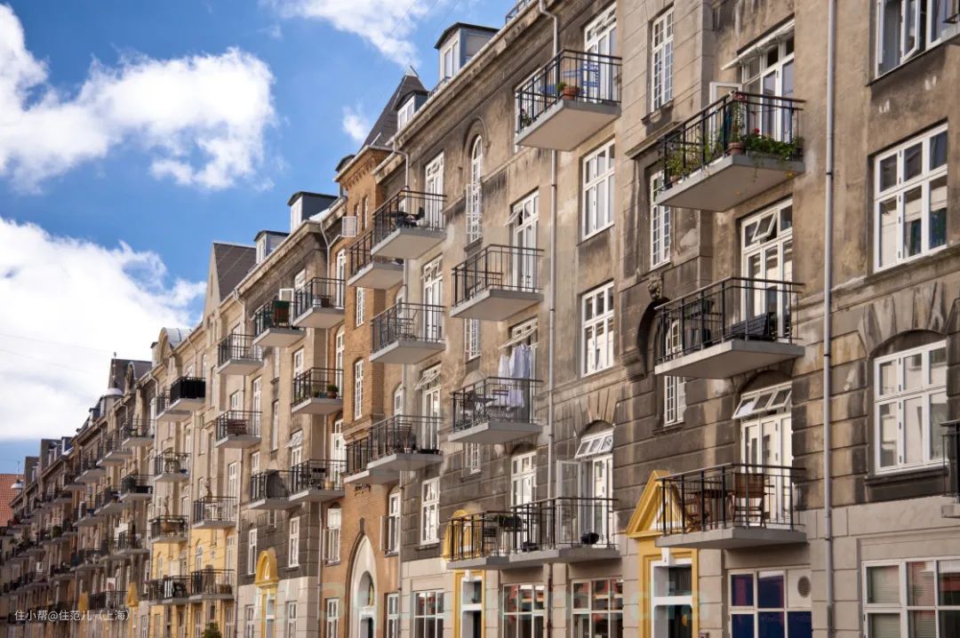 哥本哈根路边的公寓,阳台很多都布置成小花园,但没有一户用来晒衣服。因为解决了晒衣服这个事情,因此阳台有了更多的可能,图源:picfair.com