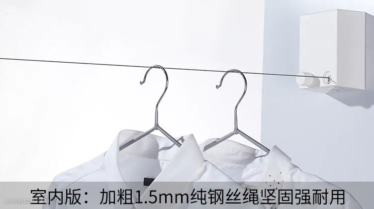 宾馆酒店里常见的钢丝隐形晾衣绳我也不太推荐,因为它挂不了几件衣服就会弯,衣服都堆在一起。