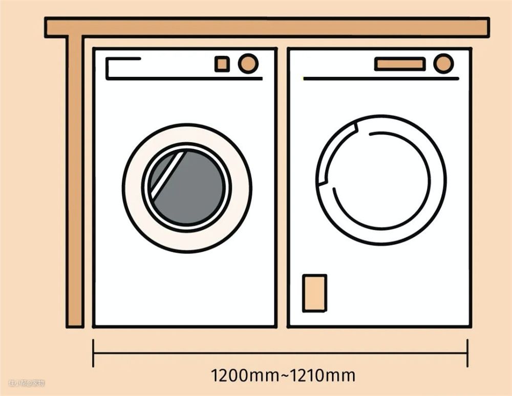 洗衣机烘干机并排摆放,在我刚才说的滚筒洗衣机尺寸基础上,再加中间10cm的留余,高度、深度则和上面相同。