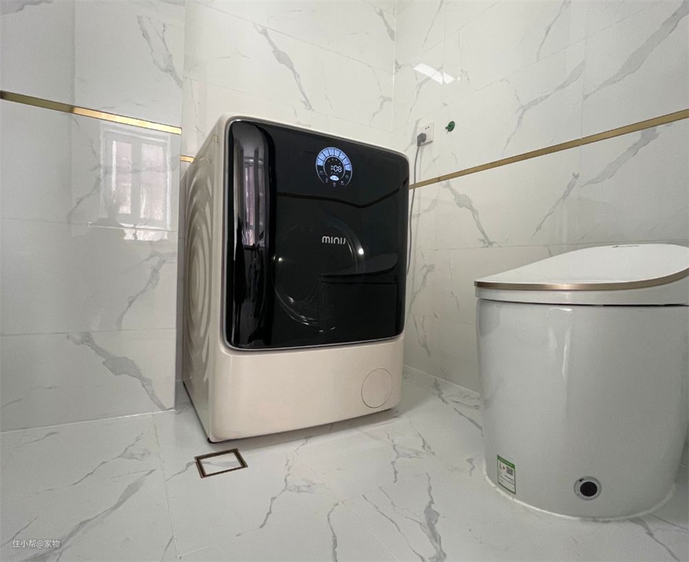 如果洗衣区设在卫生间,一定要注意做好干湿分区,尤其是让洗衣机远离湿气较重的浴室区域,以防长时间处于潮湿环境下,让洗衣机发生故障,或滋生霉菌。
