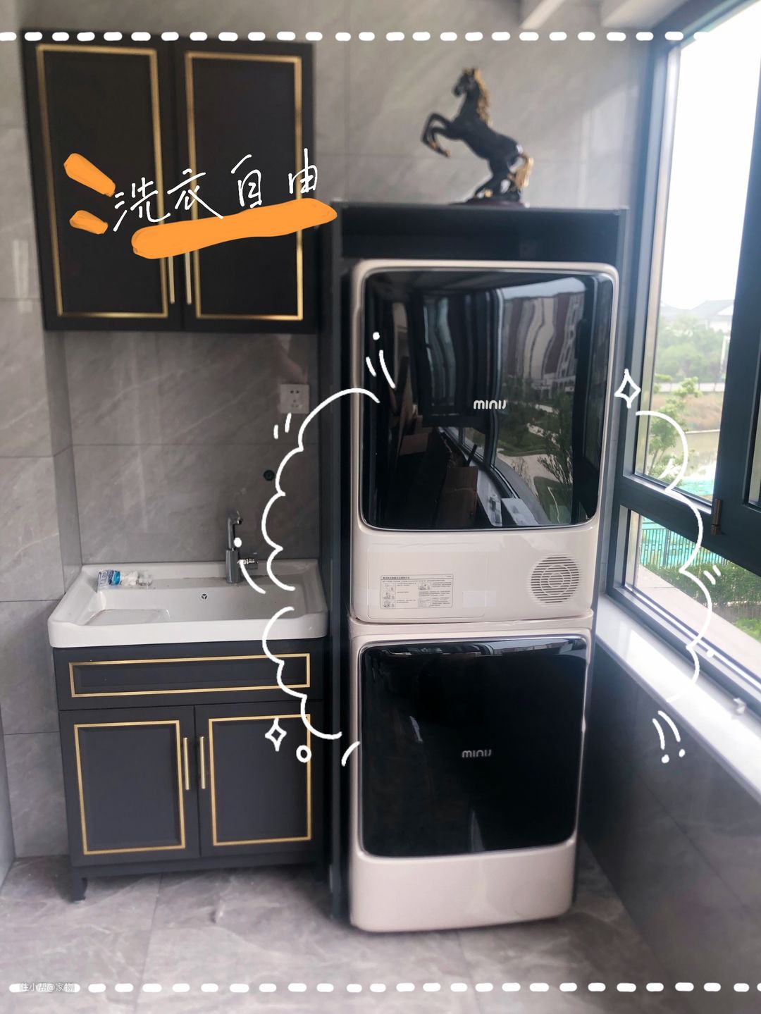 哦对,还要再多一句嘴,洗衣机转速快震动大,一定要放在下面;同时,把烘干机放在上面,烘干后拿取也会更加方便。
