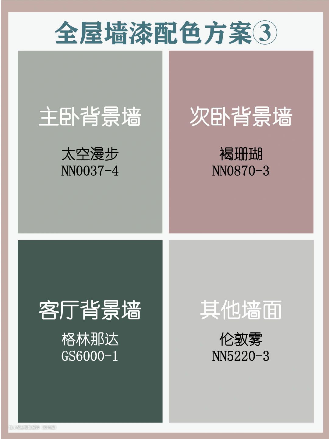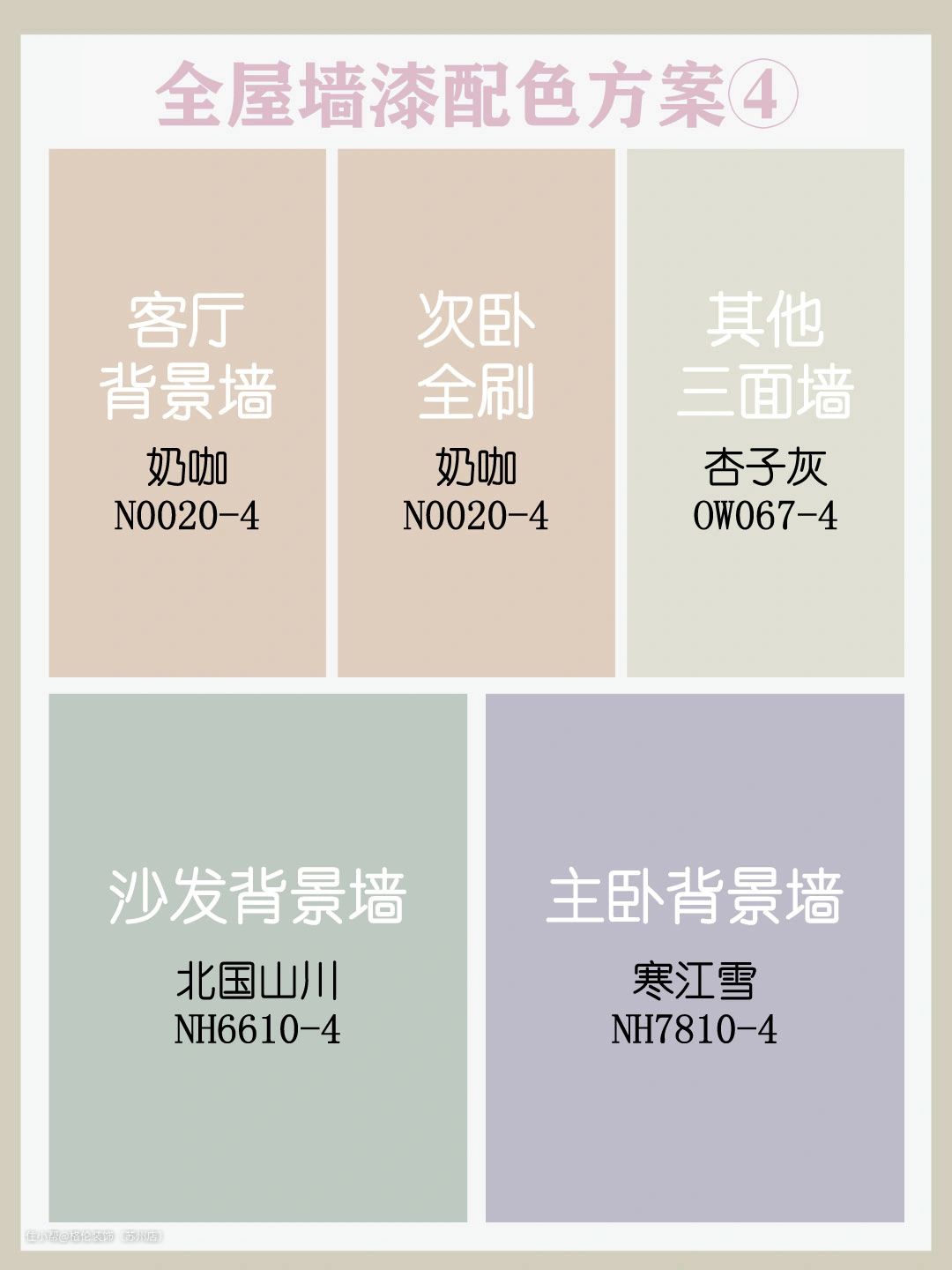 全屋乳胶漆配色方案合集|超🔥色号搭配格伦装饰(苏州店)2022-02-01乳胶漆全屋配色方案合集给你安排到位了!💡墙漆一定不要随便搭配!这真的会让你以后很后悔!!选好配色,做好攻略,避免踩雷掉坑!🤩今天给大家整理出一个配色的合集,你们跟着来搭配🧩一定不会让你们出错🍄🤓还是那句话,墙漆的效果一定不要只看第一遍的效果,晾干个几天等个效果再决定需不需要再上一次颜色👀