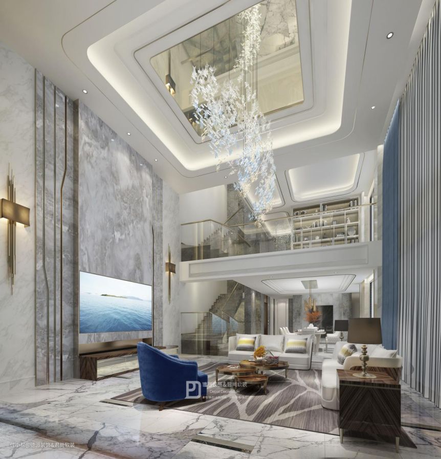 深圳星河丹堤,别墅装修案例,户型图1000平,现代轻奢风格