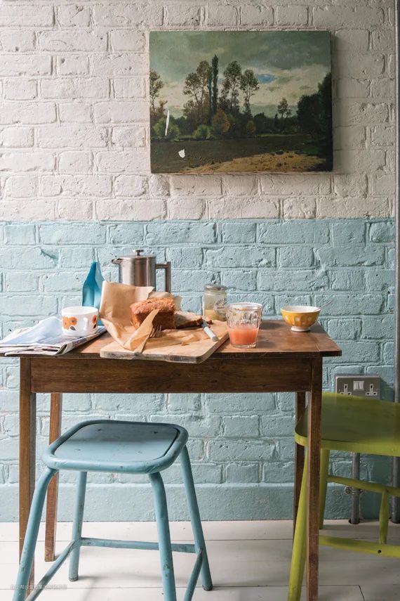 这种干净的中蓝色调既活泼又柔和,不显冷淡,很适合营造出欢快但又不浮不躁的氛围,很适用于海边住宅的装修,或是原木北欧风、喜爱海洋风格元素的装修风格。