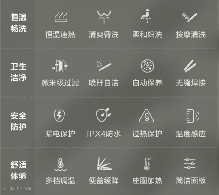 关于智能马桶盖的选购要点,就是这些。记住:按需挑选,不需要的功能,就不用多花钱~