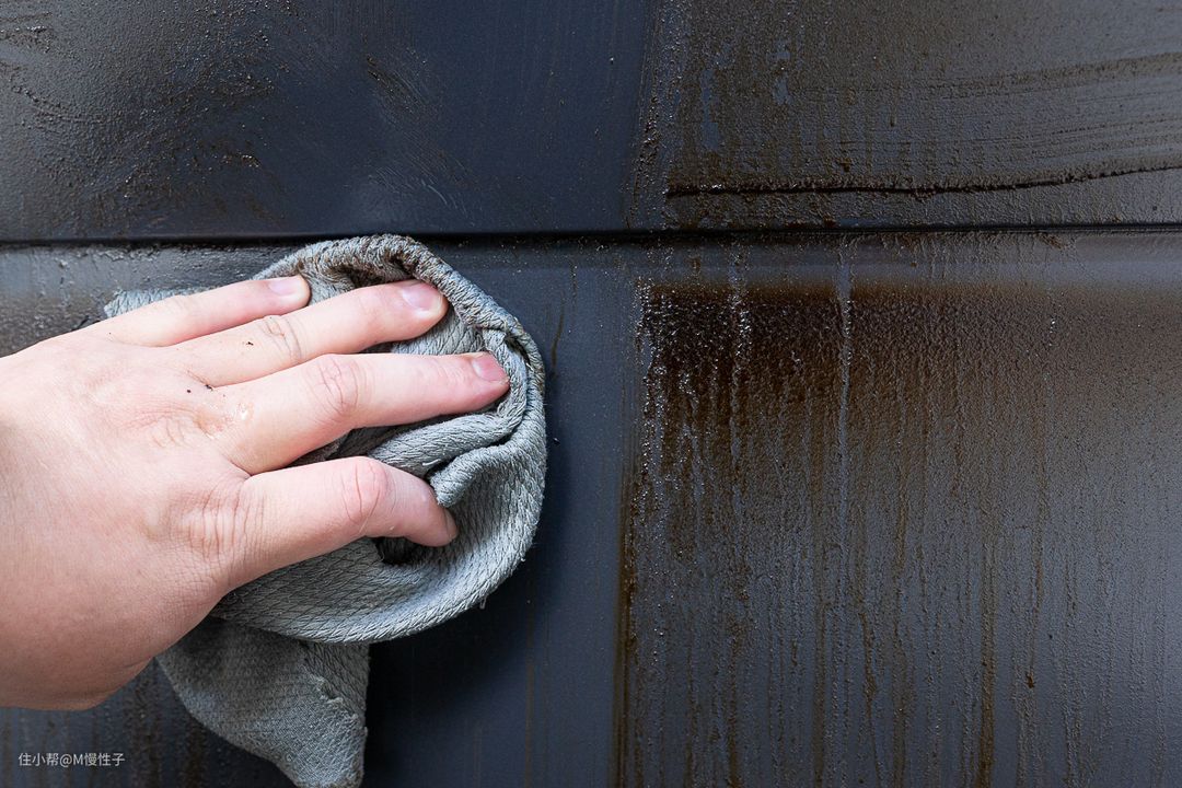 更多油烟分离的油渍会留在底部的废液盘,同样使用洗洁精加抹布就能完成清洁。