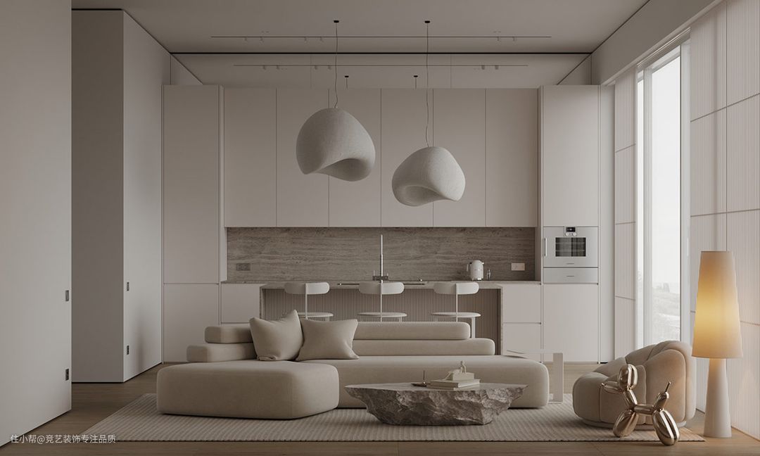 乳白色的色调在我们的第一个柔和的单色装饰方案上平滑,营造出宁静的 简约生活空间。轻盈的色调布置让眼睛和心灵得到休息,而纹理元素确保设计不会落空。