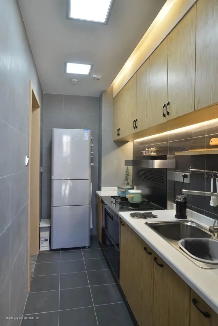 因为一般家庭空间不够,厨房的通风效果并不好,有的小户型还会做高低台,内嵌微型冰箱,厨房这种经常与火打交道的空间,很容易使冰箱被油烟侵蚀,导致不容易擦洗。