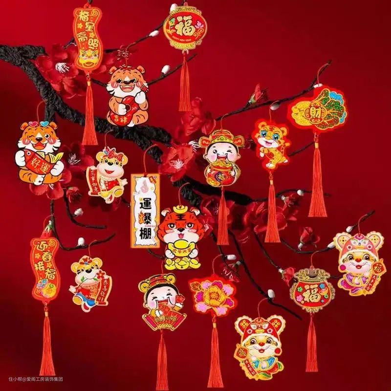 推荐理由:装饰品带绳子方便挂在家中任何角落,还能挂在发财树、金桔树上等植物上,营造节日气氛。其他门饰及装饰物,贴门或墙上都非常具有节日气氛。