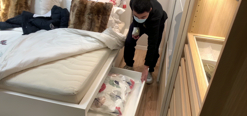 • 需要储物,买个几十块的收纳盒放床底,方便拿取又不影响通风;或者买个气压床,轻轻掀床板,下面就能储物,更方便。