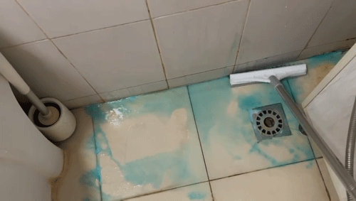 用清水冲洗后,可以用刷子另一面的刮板,刮走水渍,让地面干得更快,防止生水垢。