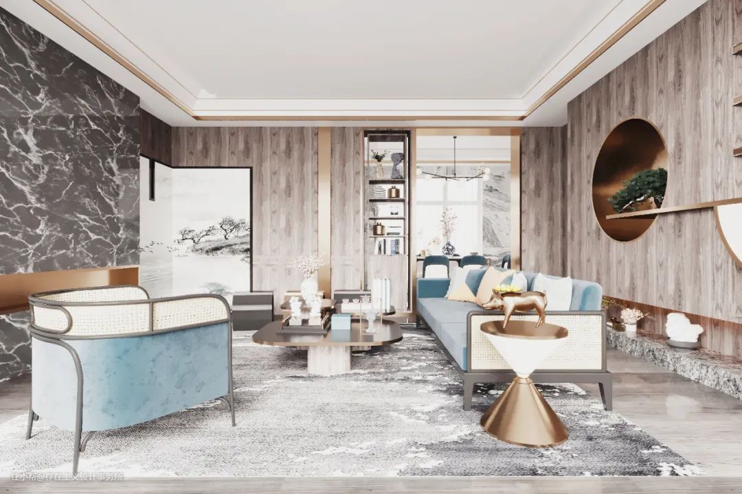 P6现代简约风格的客厅装修设计参考,喜欢蓝色系客厅,但不知道怎么搭配的宝宝们,可以参考这一组了。