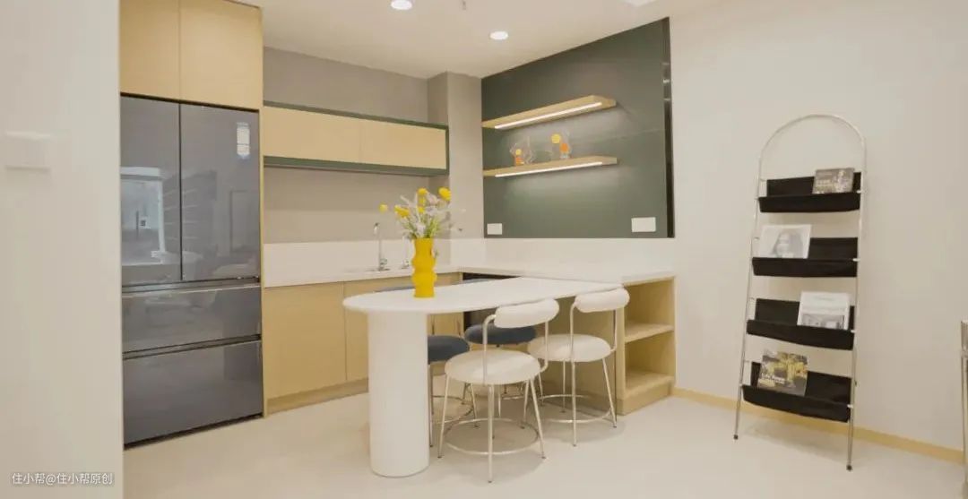 这次改造,设计师为厨房区域新增了三翼鸟内嵌式冰箱,既拥有超大容量还超节省空间。