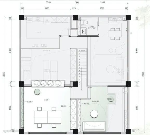 利用层高优势,在靠近采光区域,错位架空,隔出2层,作为男主人工作和女主人休息的空间。