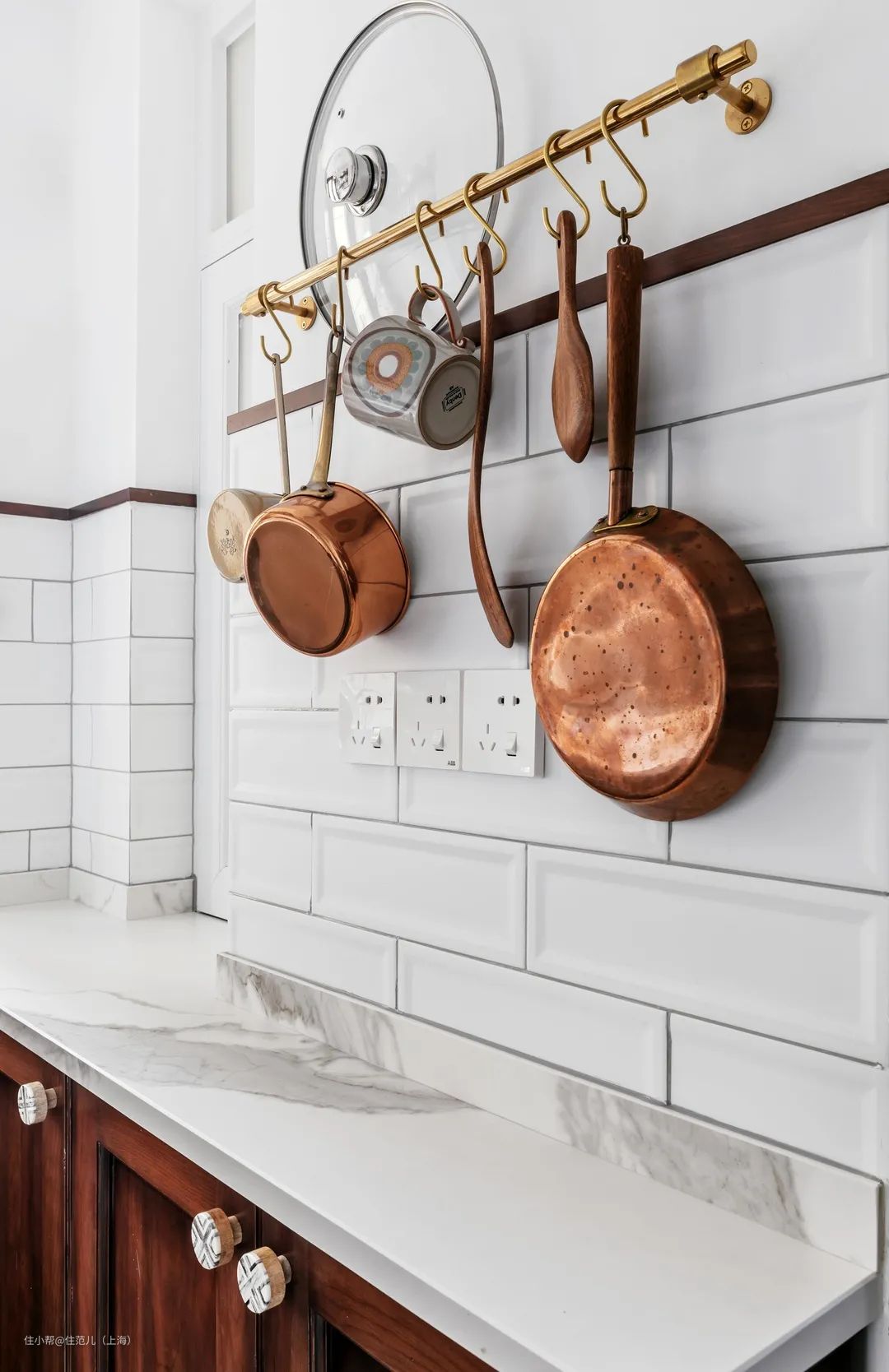 空间整体色调的搭配干净简洁又不失温暖甜美,与LDK空间相统一的线条感,复古橱柜与纯白瓷砖挡板组合,简约有品质。