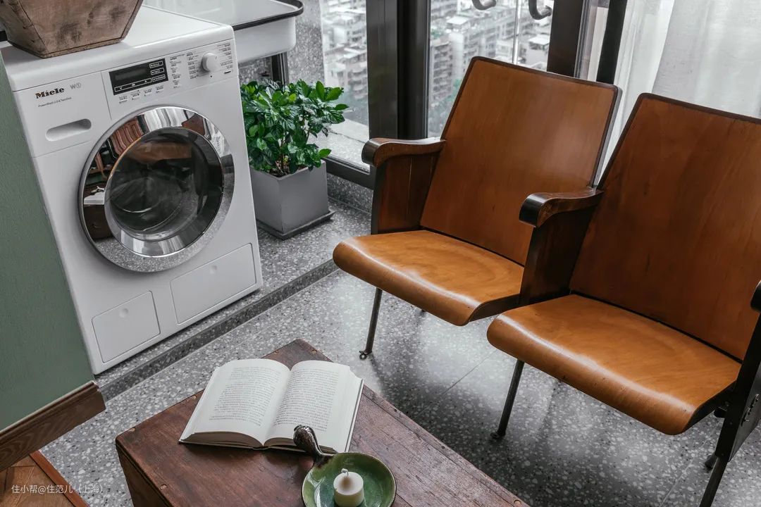 与客厅相通的阳台区域有个小家务区,在整个复古氛围内却不显突兀,由于屋主有着十多年的英国生活经历,平时喜欢旅游的她爱收集各式品类的物件。