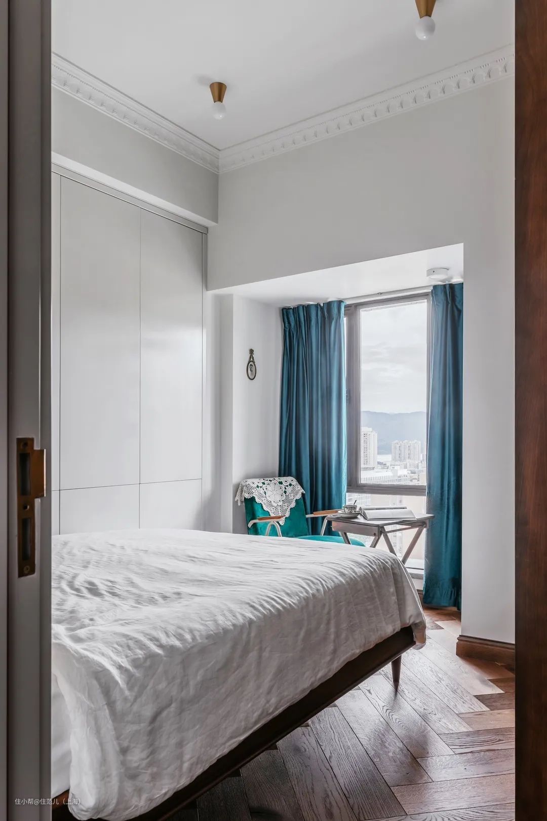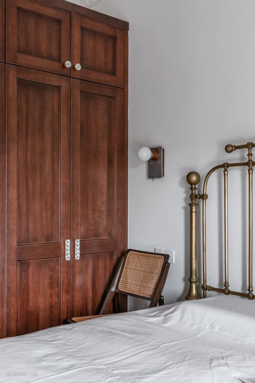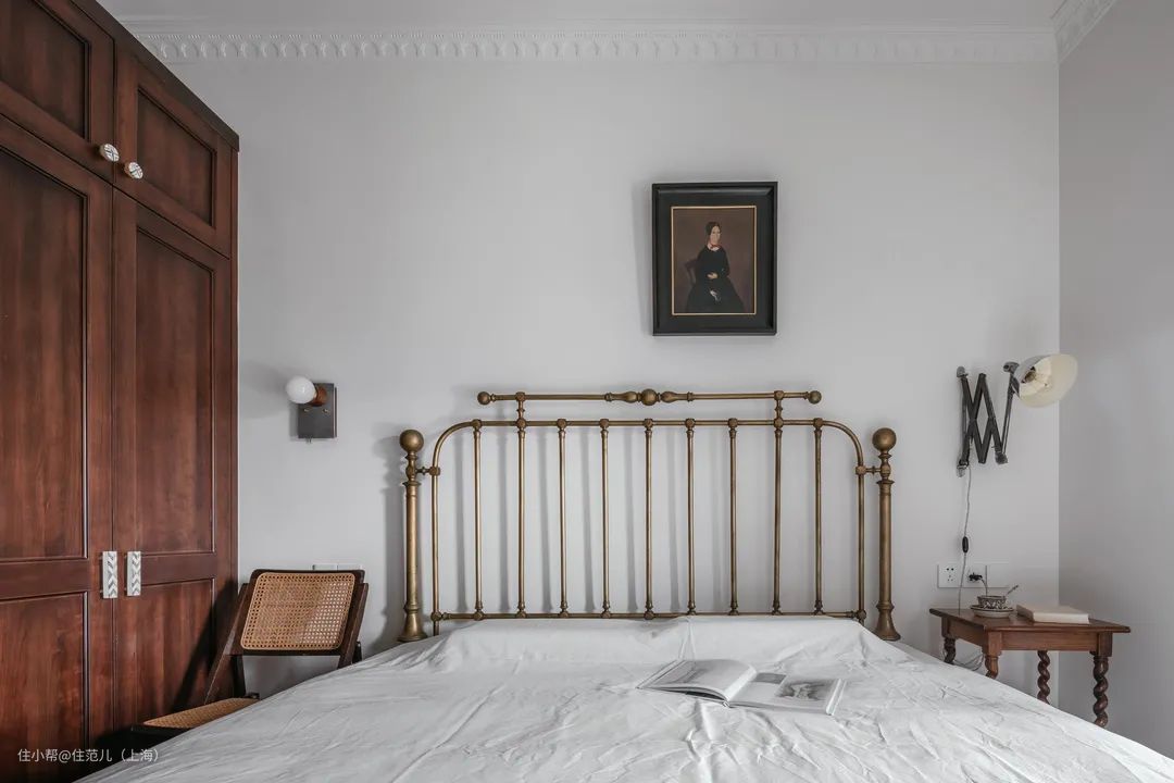 就像设计师在一开始找寻灵感时候来说,从来不会探讨一个主卧需要一个什么样的护墙或者什么样的背景,不限定卧室以什么风格元素表现,只需要在一个大面的床背和软装搭配中去感受卧室代入的复古感。