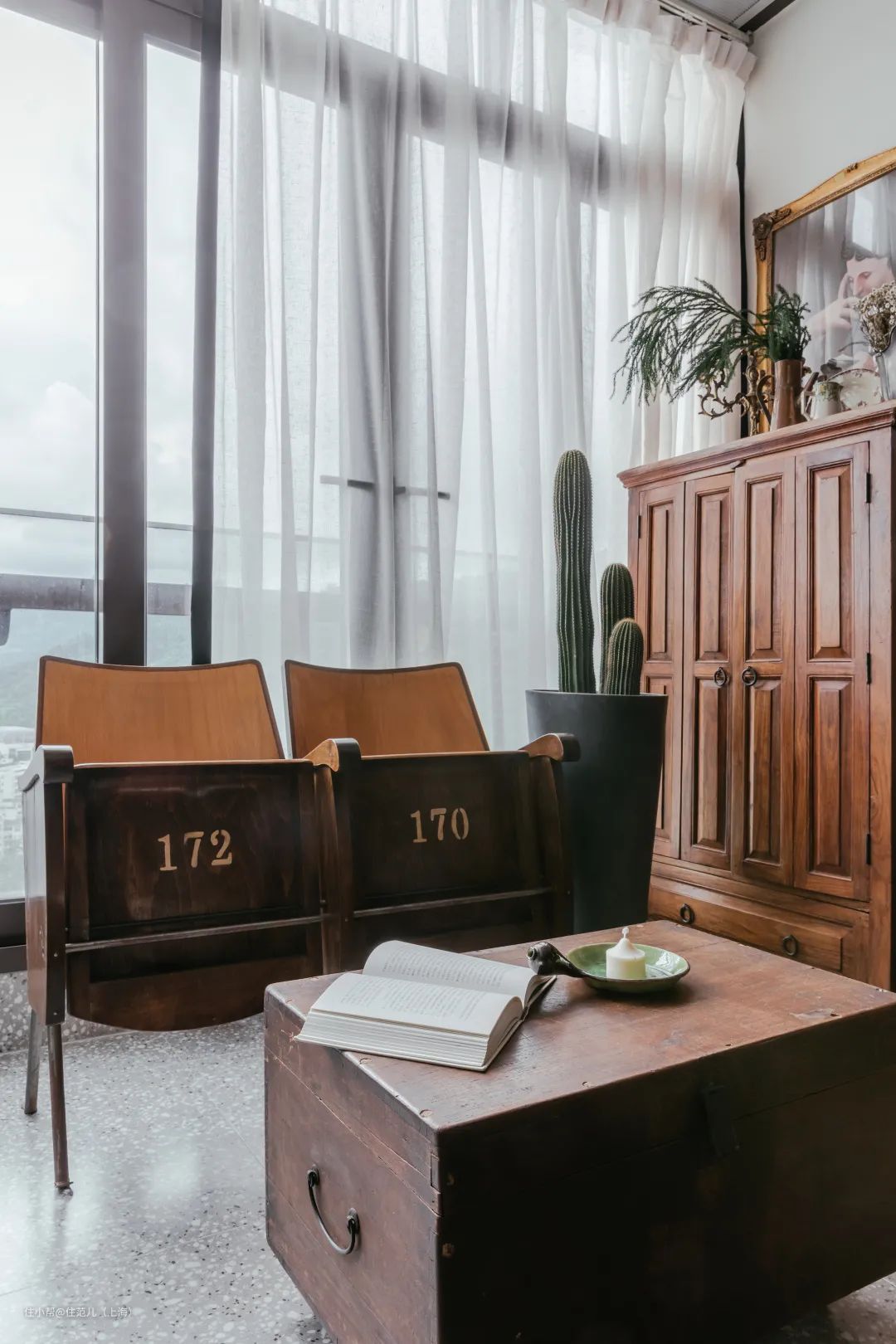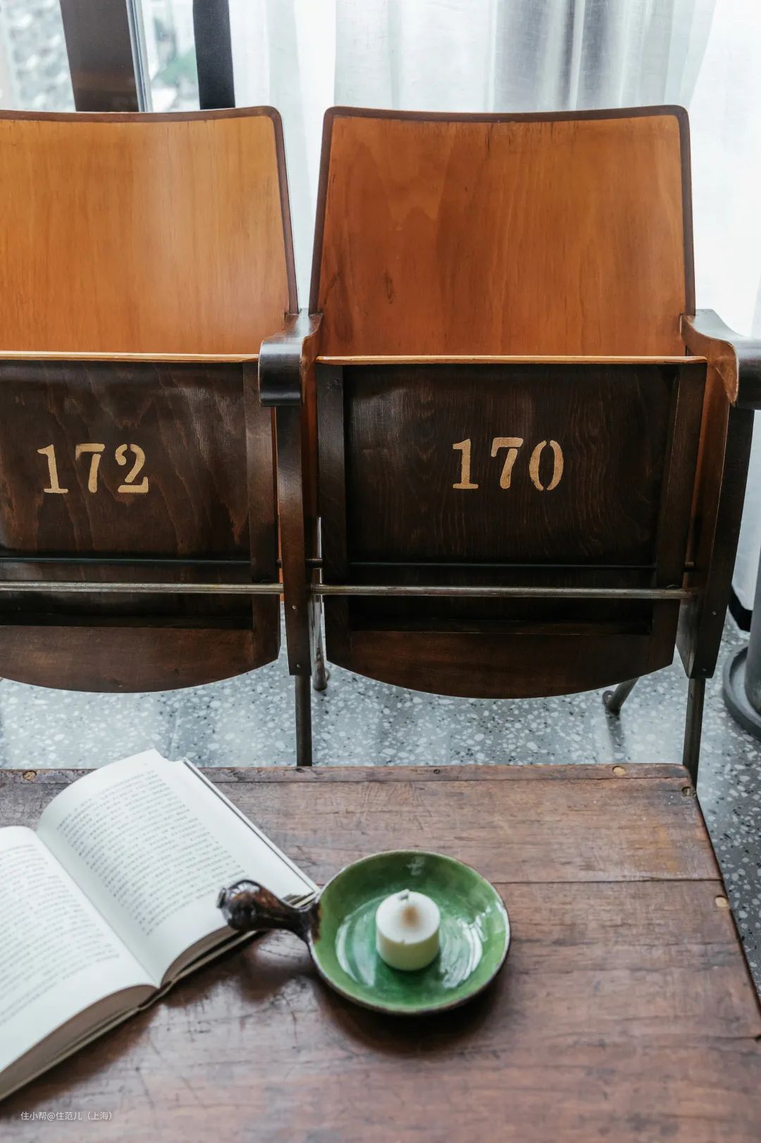 两只标号170-172的叠椅漂洋过海从影院中被请来,安静的诉说着它们的经历,生活印记像阳光一样流淌在整个屋子里,耐人寻味。
