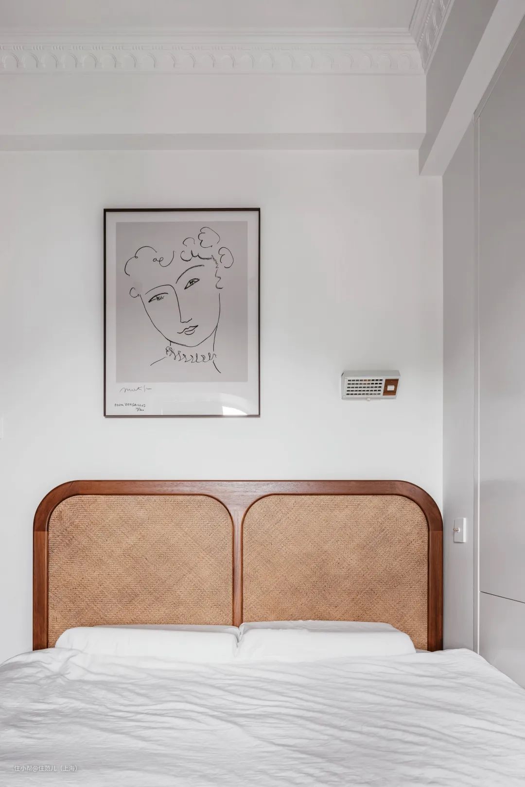 次卧依旧如此,虑到光源的设计,床头很适合安排壁灯,尤其可调节壁灯设计简约实用,复古的壁灯和床背的编织纹理,更是多了一份温润的感觉。
