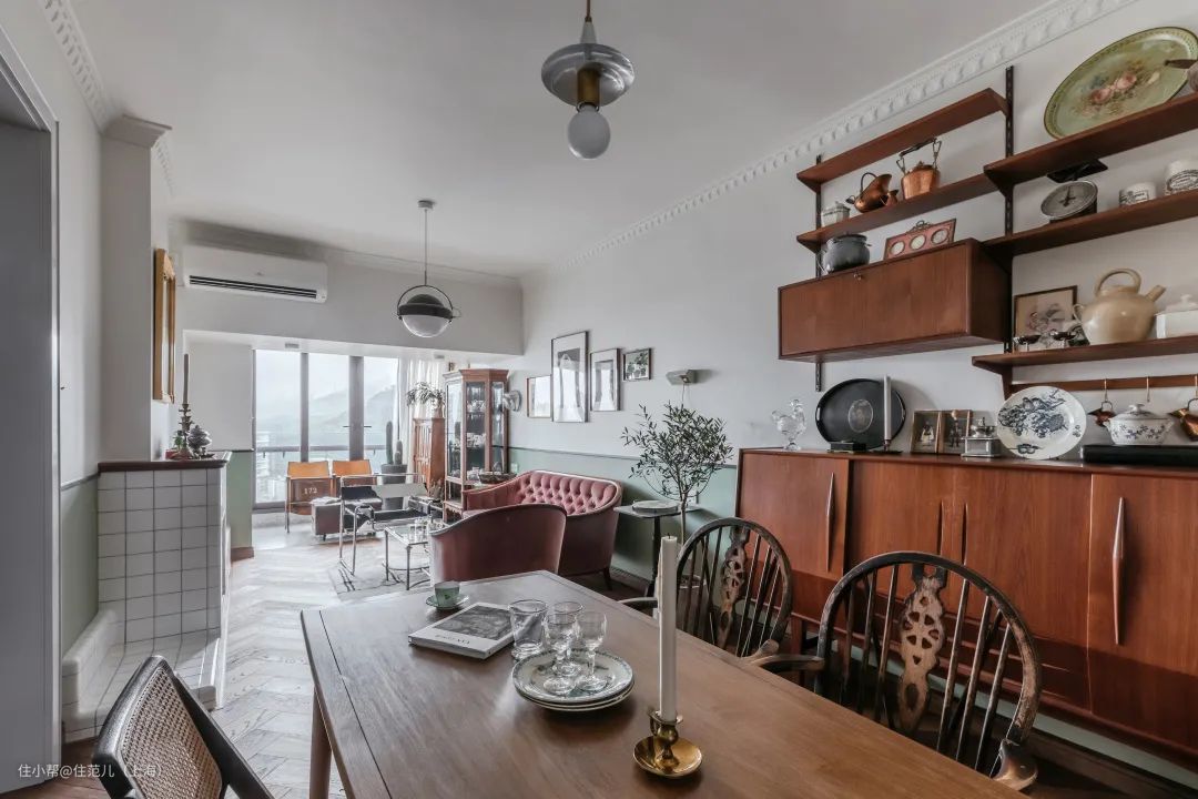 如果说极简主义不食人间烟火,那复古风的房子更像一个家庭的博物馆,随着时间的推移而更加丰富,穿插点缀着一些欢快和英伦元素,在古典氛围中屋主能随时感受到艺术给居家带来的美好居住体验。