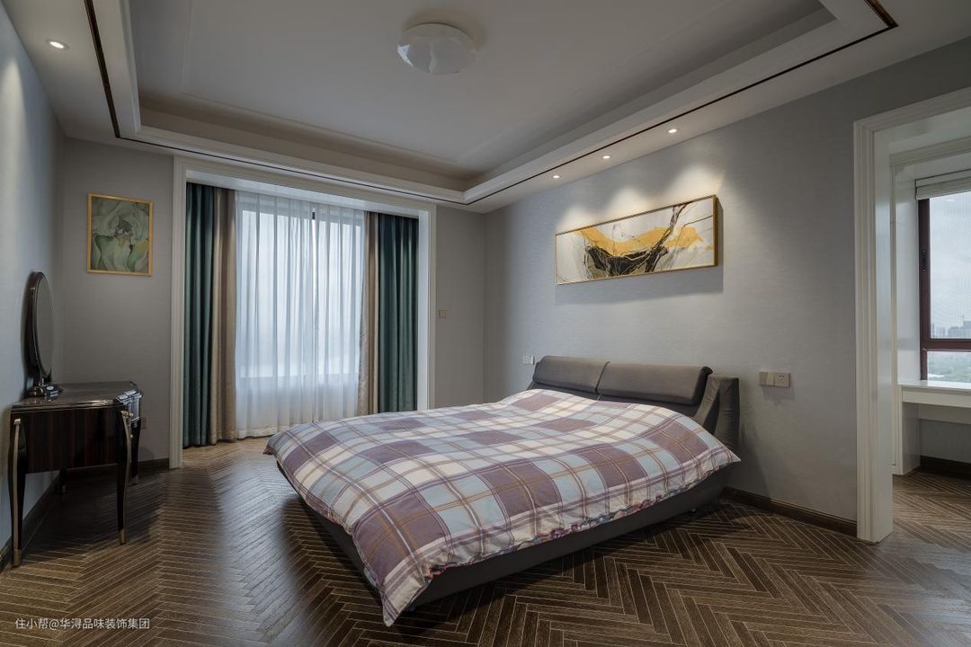 主卧为无主灯设计,选择将阳台打通,利用其位置设计了小型的休闲区,这样大大增加了主卧的功能性,休闲又舒适。
