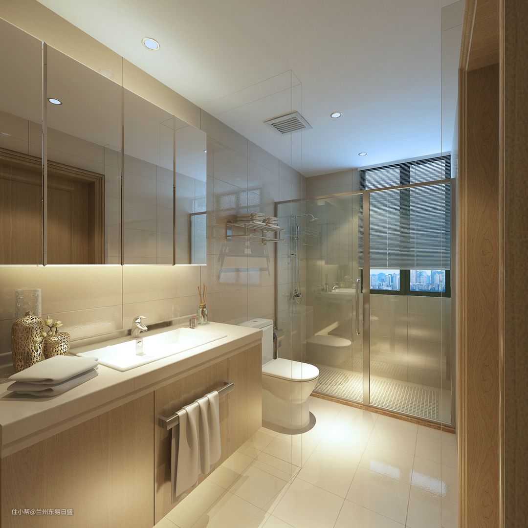 卫生间以空间功能实用为设计重点,在装饰上色调协调,造型简约,不仅能体会到设计的美感,还能让生活更加便利。