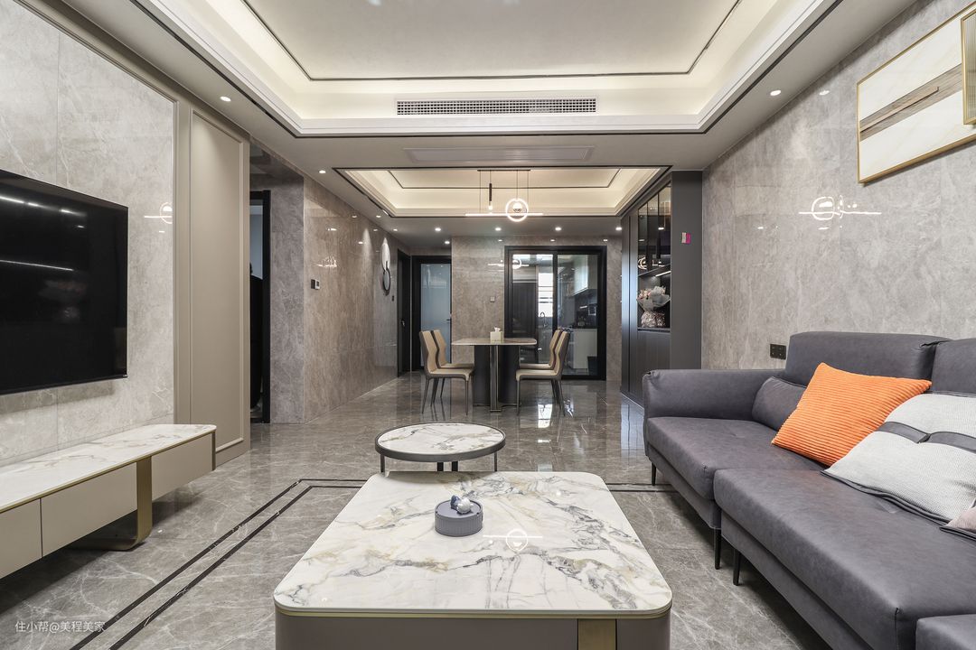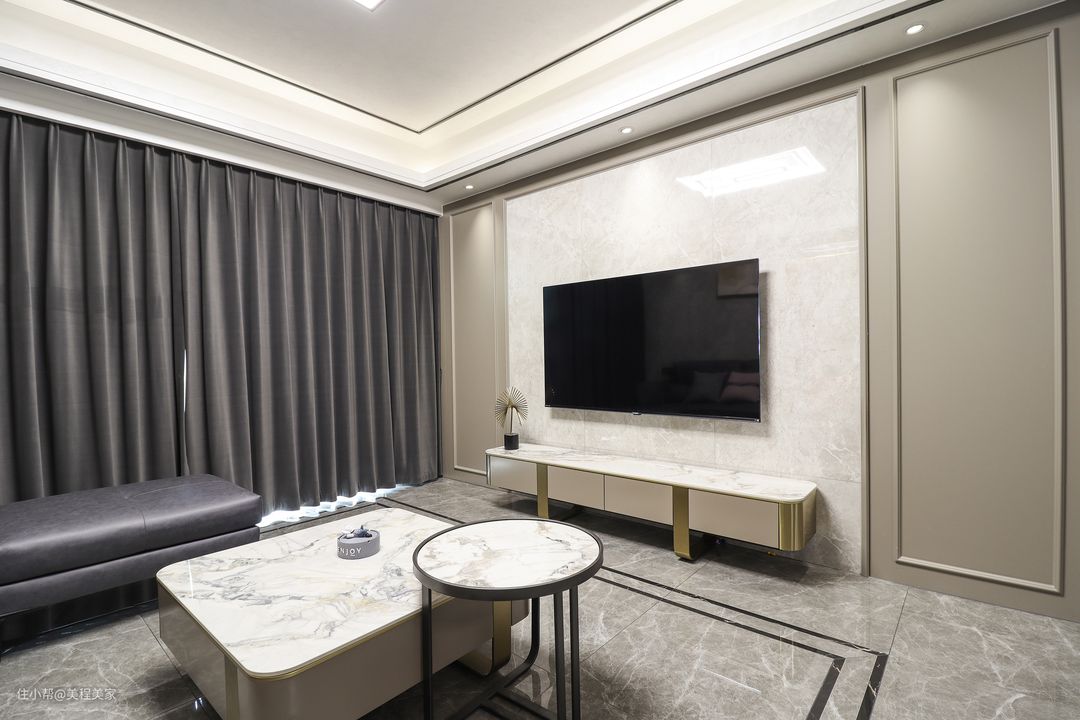 本案例户型实测面积125㎡,动静分区合理,格局通透三向采光通风,朝向与景观面都相对出色,无论是功能性还是改善生活都可以完美协调。在格局上,设计师顺势而行,采用现代+轻奢的设计理念,精致质朴的规划语言,去实现屋主对于生活品质的追求和舒适度。