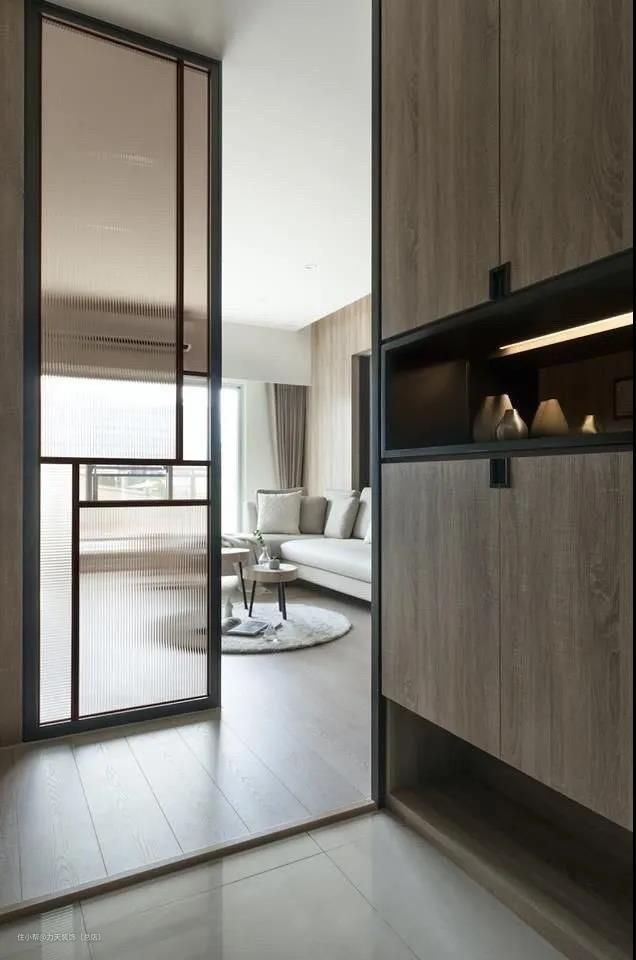 在玄关处加入长虹玻璃的设计,不仅不会影响室内格局,还能避免室内空间一览无遗,安全感十足。