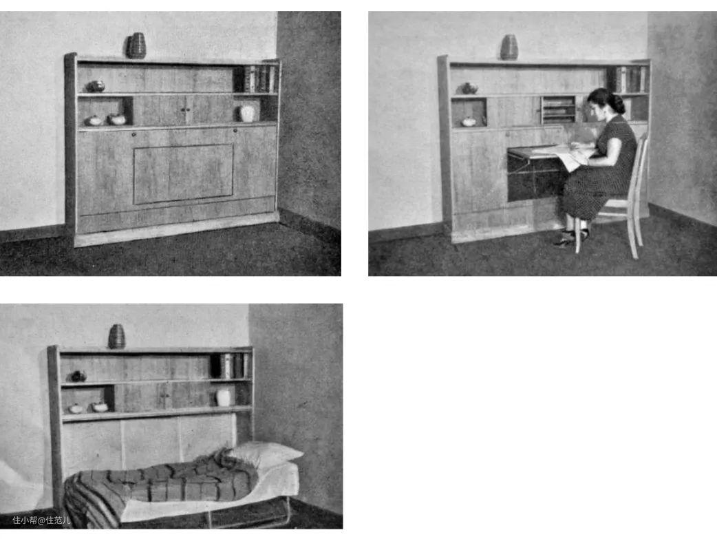 “灵活性”也是刻进中古家具 DNA 里的特征,简单的设计如书桌长度可延长,复杂些的就像图里的边柜,还能用作书桌或者床。