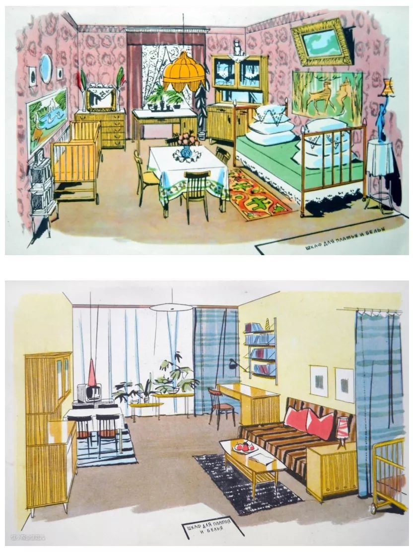 比起华丽和繁复的花饰,简约的线条设计能让空间显得更为宽敞,这一点在住房紧张的 1950 年代显得尤为重要。