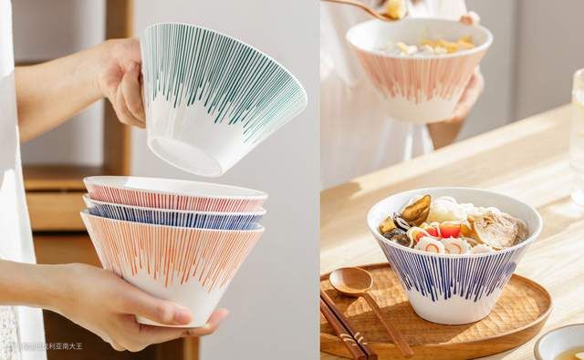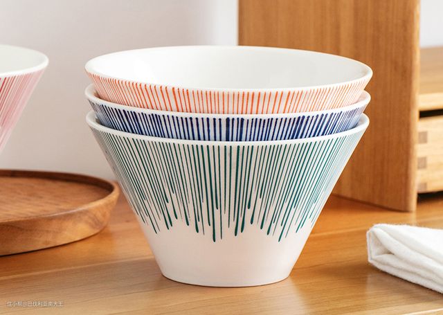日式美浓烧工艺,温釉下彩,无铅无镉,用多久都不用担心掉色。经典的斗笠造型,盛汤盛面/拌沙拉/装水果超实用,尤其是盛面条,深夜食堂既视感啊。